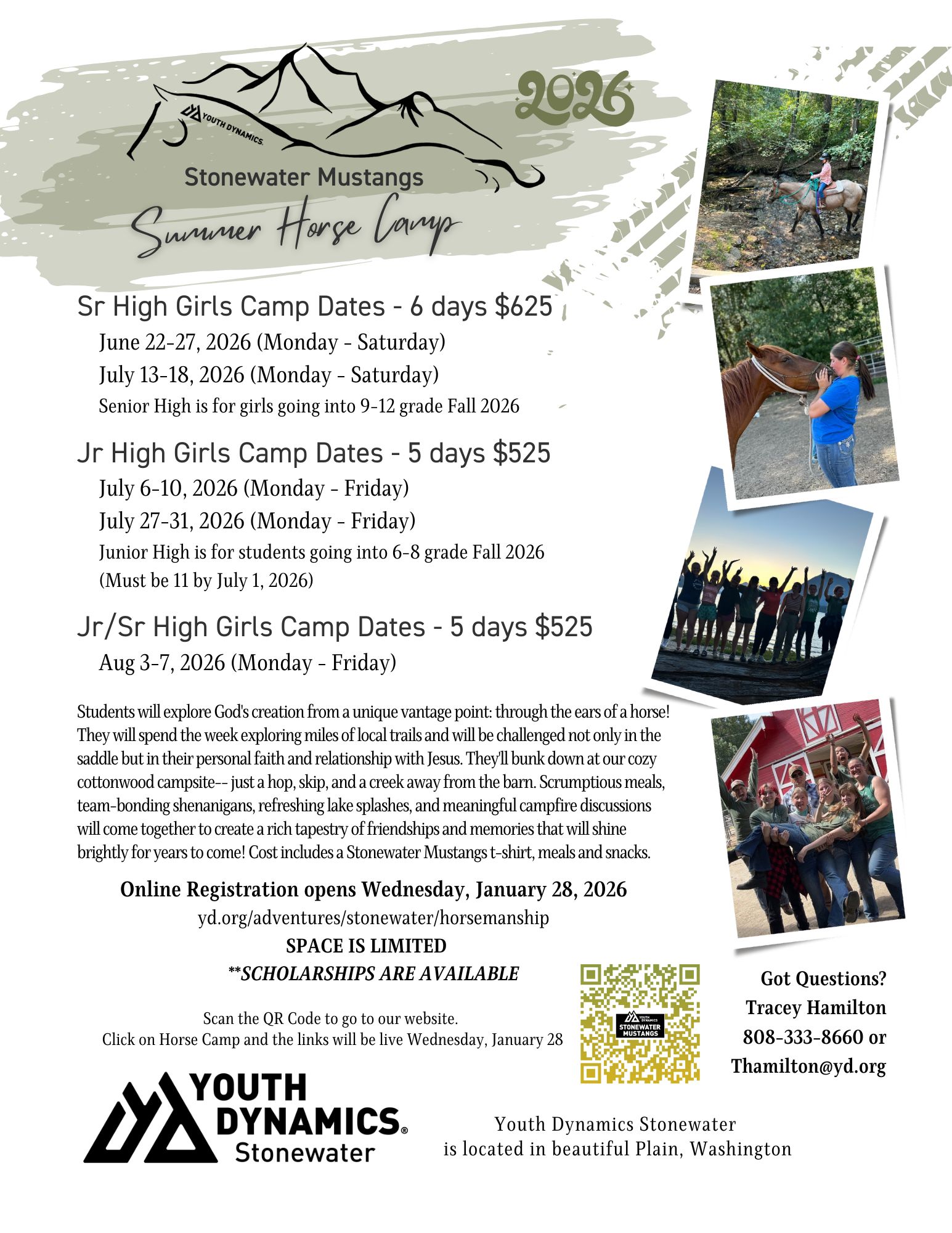 Contact Tracey at Thamilton@yd.org to be put on the mailing list for registration for Summer Horse Camp. Registration opens at the end of January.